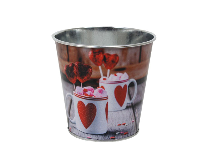 Cache-pot métal imprimé "Mugs Coeurs" Ø10,5 int. h10,5